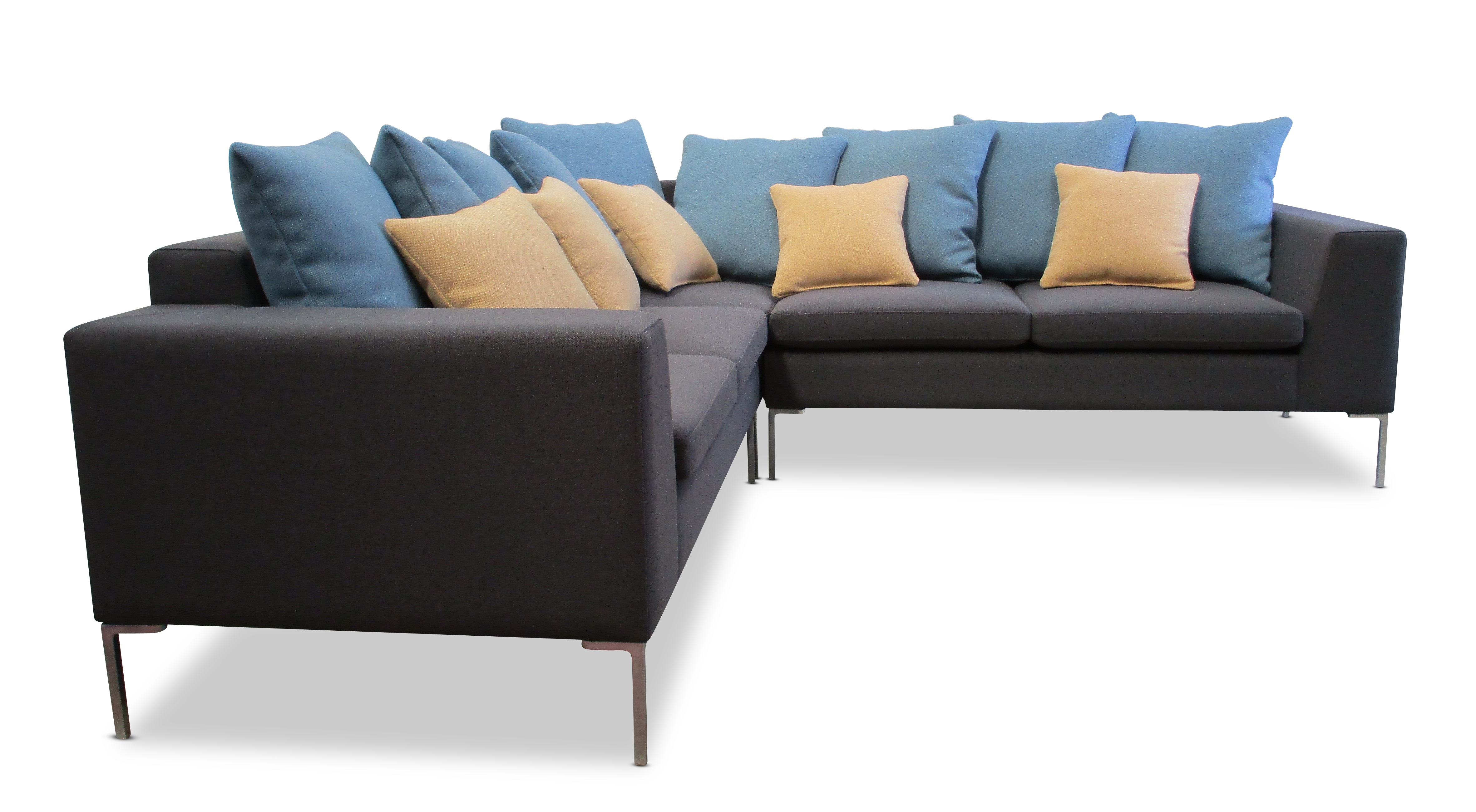 The BAILEY chair is a spacious design, with an array of loose back cushions, standard with fine chrome legs and high-density seat foam.
