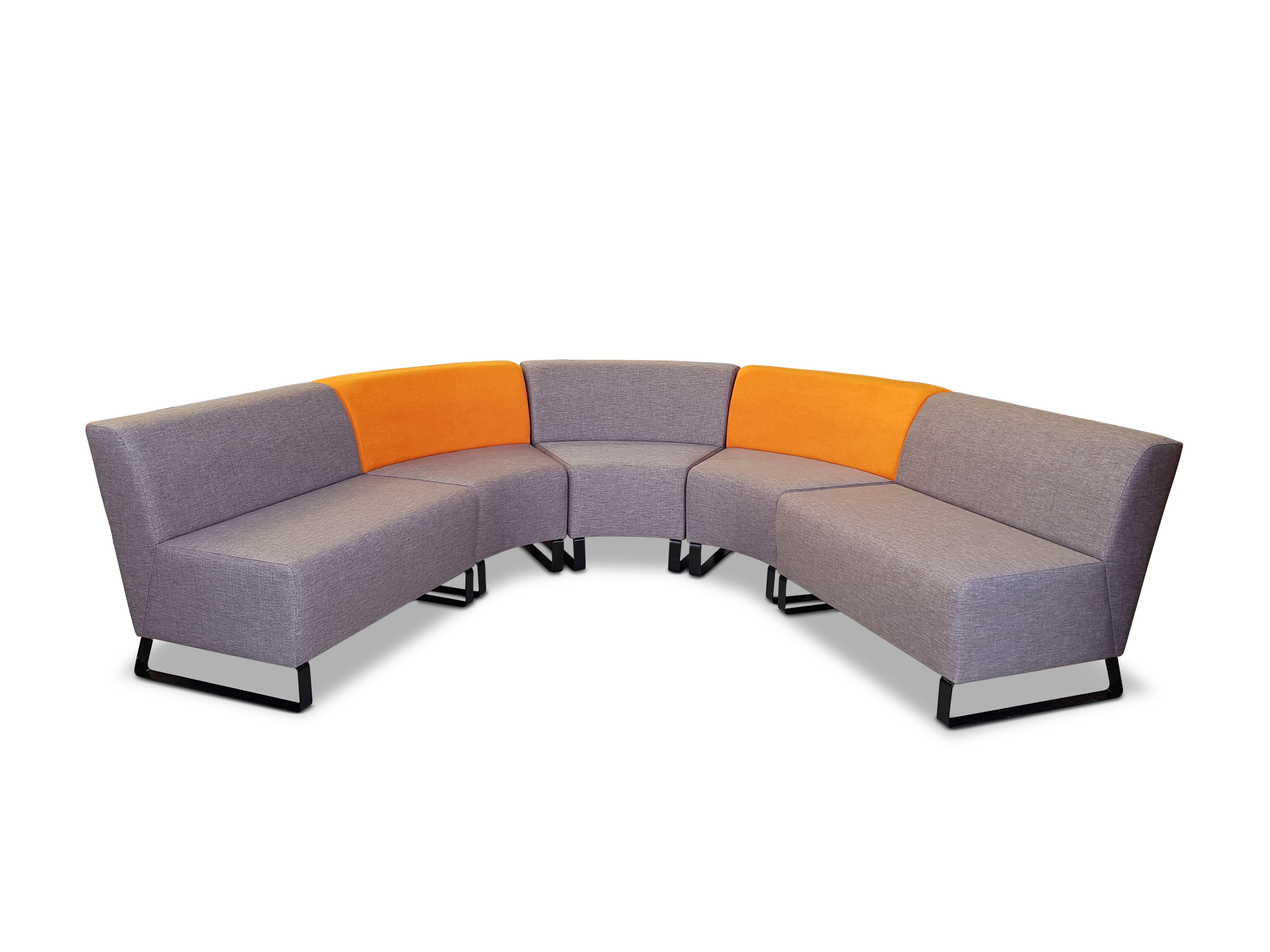 The GRANDI design is popular for its adaptable ‘huddle’ atmosphere and can be set many different ways. Available in curved and straight units and comes standard with angled powder-coated sleigh legs, and high density seat foam.