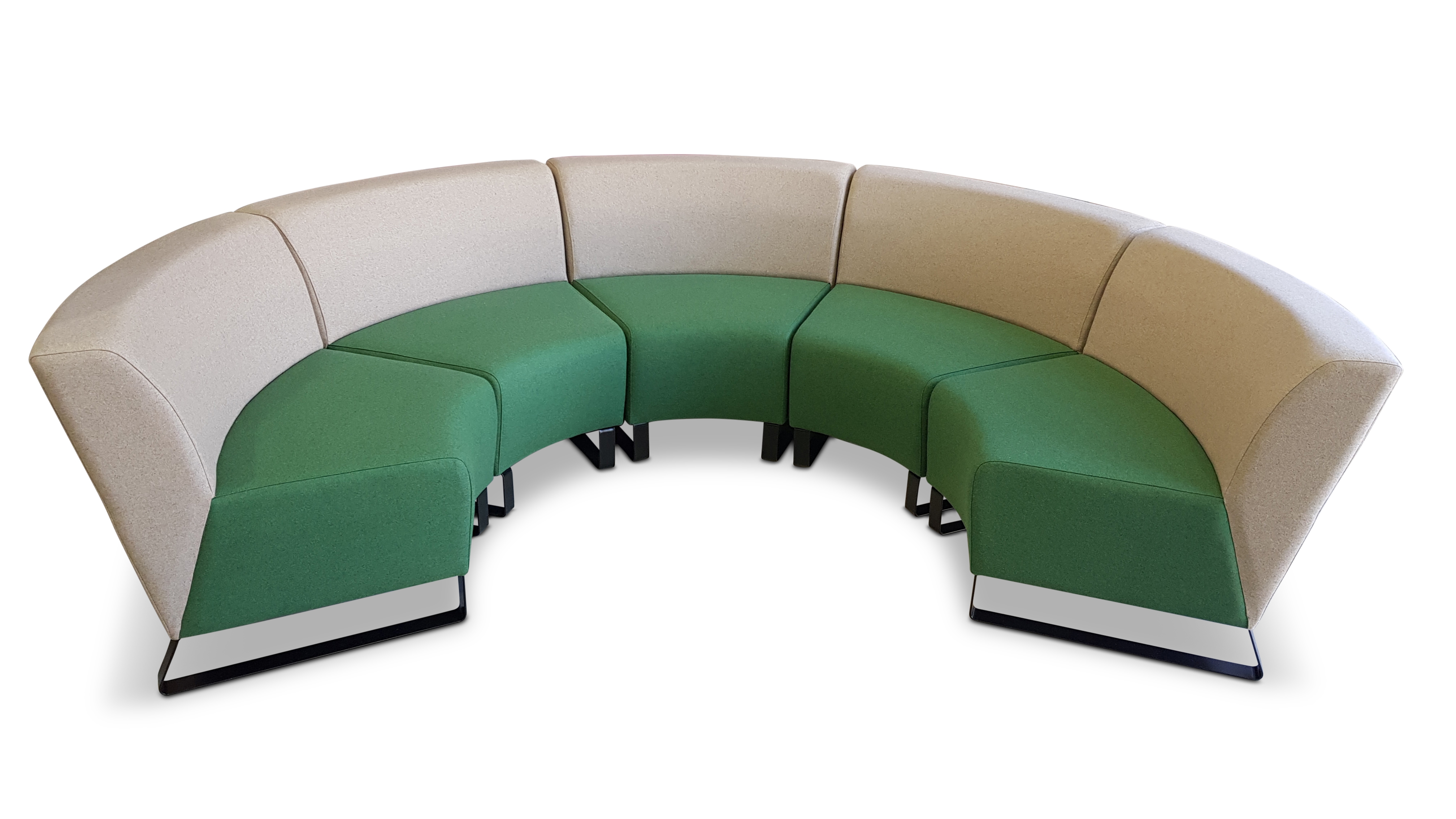 The GRANDI design is popular for its adaptable ‘huddle’ atmosphere and can be set many different ways. Available in curved and straight units and comes standard with angled powder-coated sleigh legs, and high density seat foam. Available in a range of covering options; fabrics and vinyls and comes complete with a 10 Year Manufacturers Warranty.