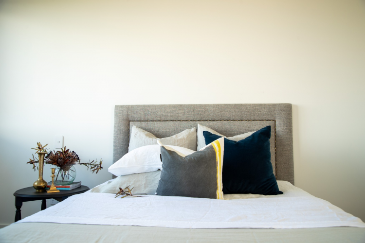 The Indiana headboard is a simple modern padded headboard with a wide nail border and stud inlay.