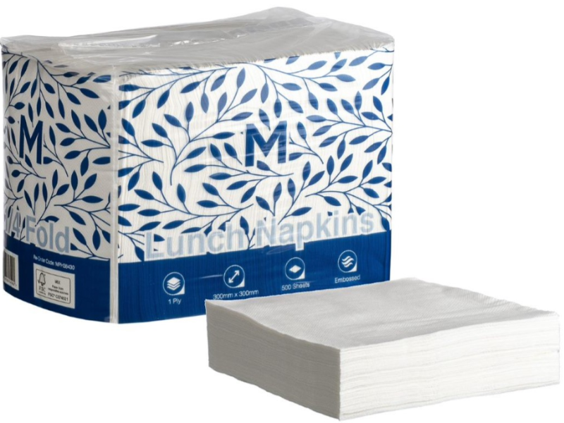 Lunch Napkins are 1 ply with an embossed finish. They are frequent use napkins that can be used in cafés, restaurants, cafeterias and staff rooms. These napkins are easy to fold, and are 1/4 fold. The 1/4 fold design creates a perfect square napkin presentation.