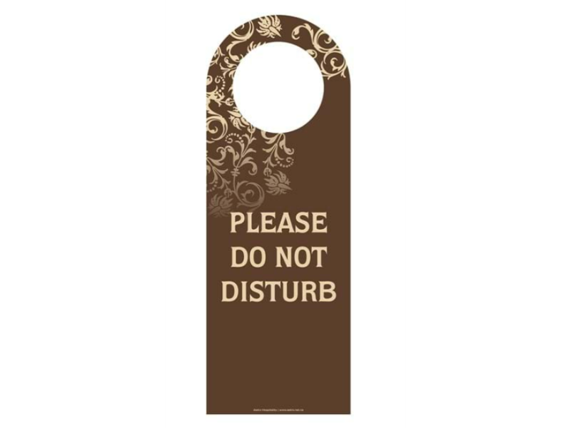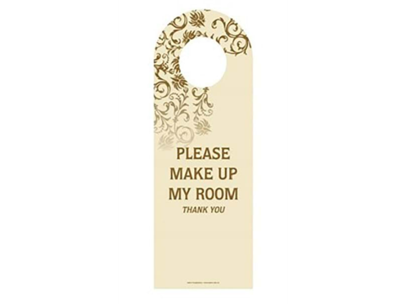 - Writing on door hanger "PLEASE MAKE UP MY ROOM"