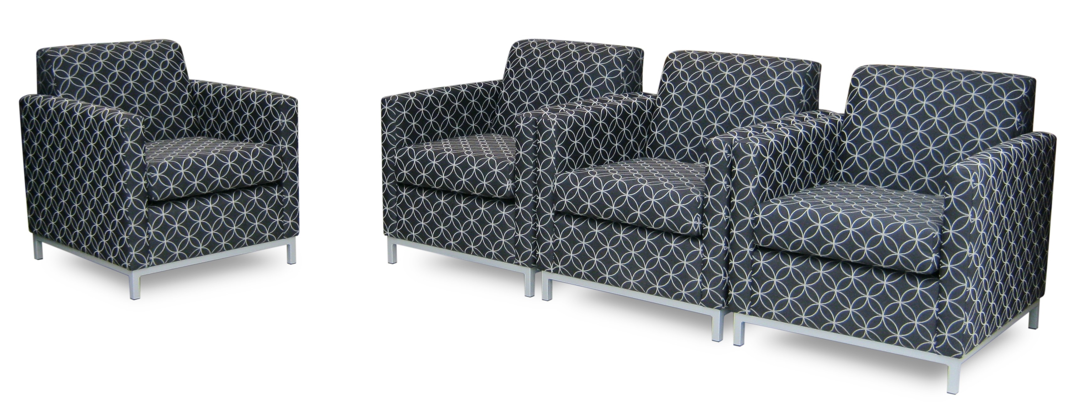 The APOLLO is a compact armless unit, very versatile, and comes standard with either metal powder coated or chrome legs, and high density seat foam.