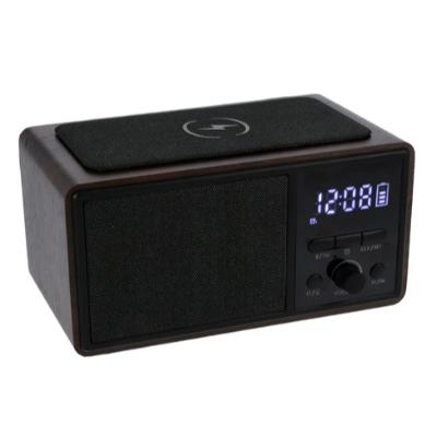 JVD Carabay Wireless Alarm Clock, Walnut Finish, USB, Bluetooth, FM Radio, 8W Speaker, AS Plug