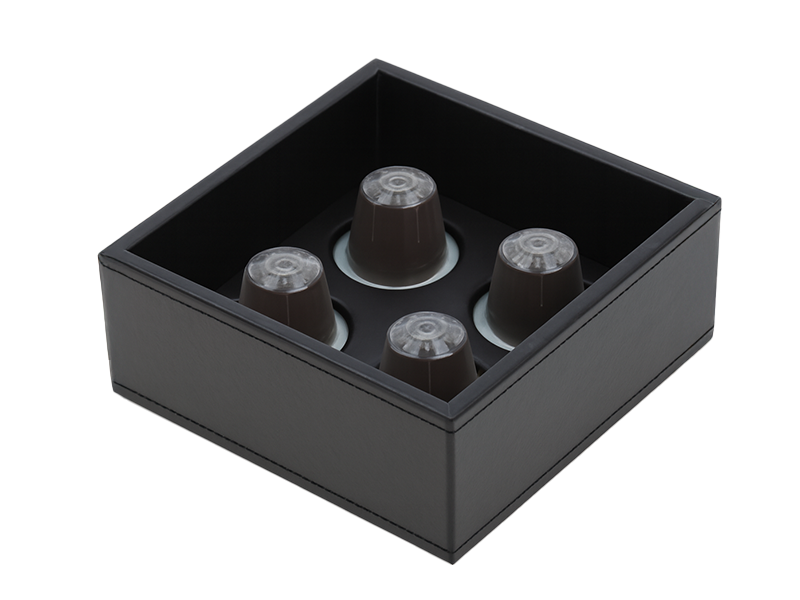 A timeless design with a leather look coffee capsule pod holder for 2 or 4 pods. This product exudes class, luxury and a timeless style.