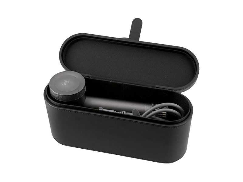 - Charme Black PU Leatherette Hairdryer Box with Magnetic Lid Closure and Velvet Interior: 310 x 100 x 155mm