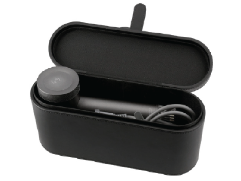 - Charme Black PU Leatherette Hairdryer Box with Magnetic Lid Closure and Velvet Interior: 310 x 100 x 155mm