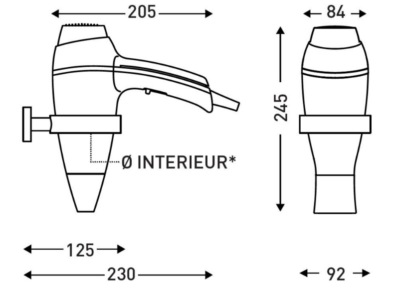 ALTEO Black Hair Dryer 1875W, easy to operate with its patented Light Touch handle. 6 drying configurations with cold shot. Equipped with an ionizing system. With removable nozzle and back filter. With extendable spiral cord with plug.