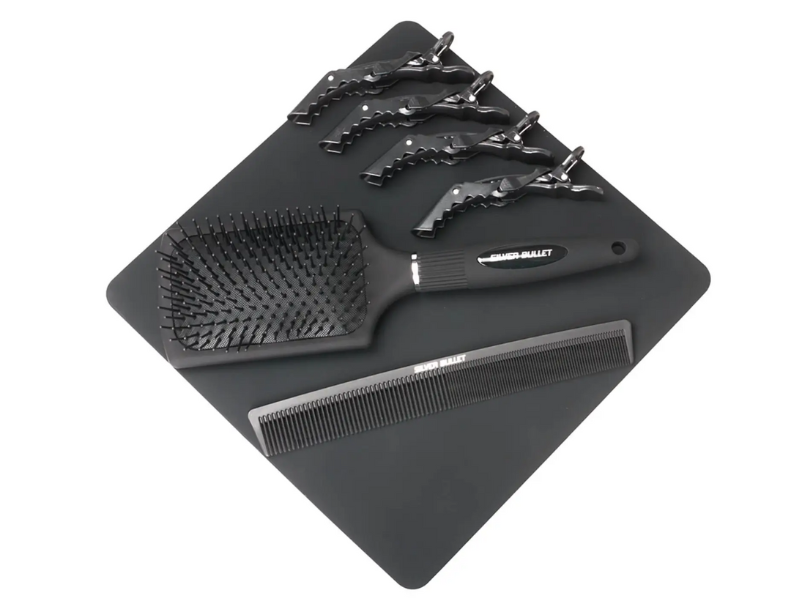 - Includes: Silver Bullet Paddle Brush, Styling Comb, 4 Crocodile Clips