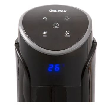 - Goldair Electronic Tower Fan, 3 Speed, 101cm, Black