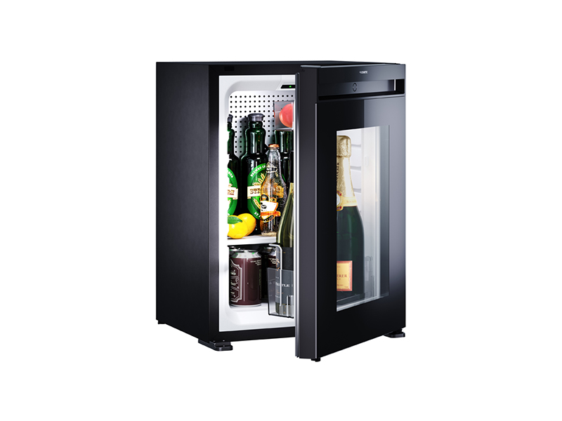 This stylish 40 Litre class compressor minibar delivers powerful cooling performance and outstanding energy efficiency, ideal for modern hotel rooms. The transparent glass door enhances visual appeal and encourages minibar usage, making it a practical and aesthetic choice for hospitality settings.