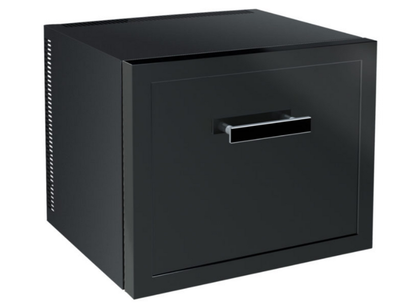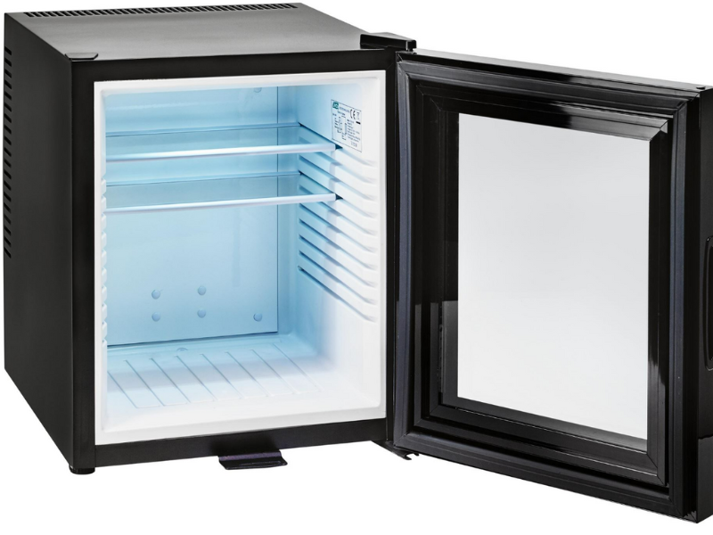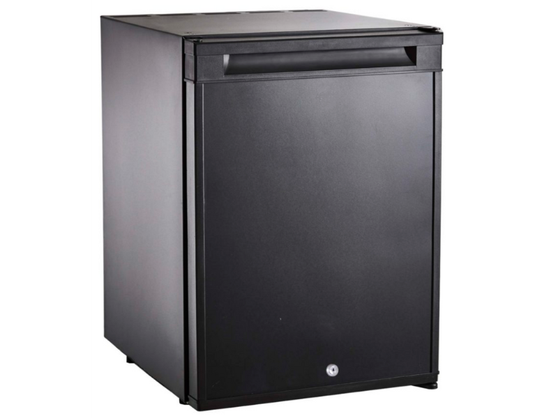 This compact JVD thermo-absorption minibar fridge is ideal for hotel and motel rooms, offering completely silent operation with low energy consumption. Designed for guest comfort, it uses ammonia-free R600a refrigerant and features a tempered glass door for easy product visibility.