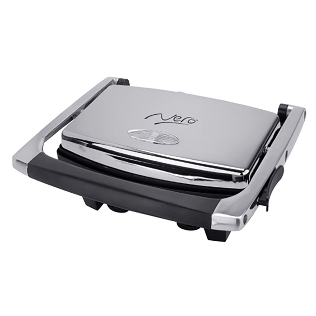 Nero Stainless Steel 2 Slice Sandwich Press Floating hinge caters for contents and extra large non – stick plates for easy cleaning.