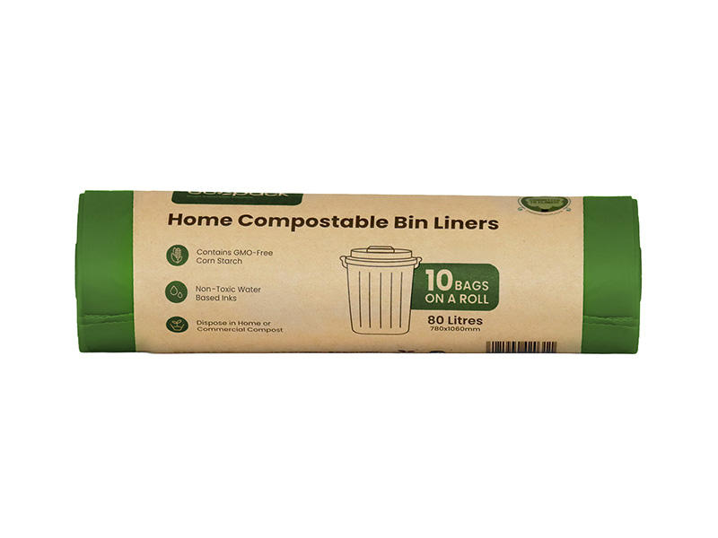 Ecopack Compostable Rubbish Bags, 80L, Green, 10/roll