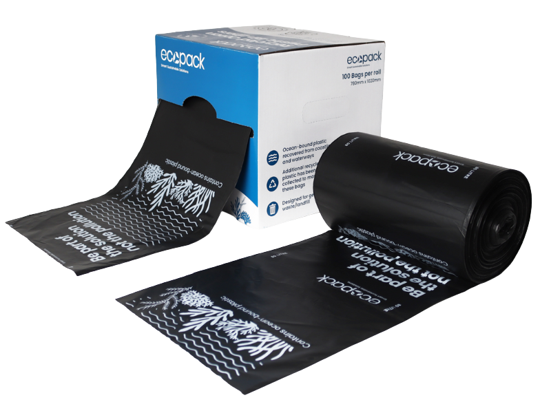 - Ecopack Compostable Rubbish Bags, 80L, Green, 10/roll