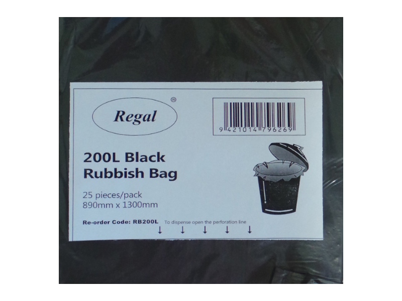P27. Bin Liners, Black, 885X1300mm, 200L, 50/pk