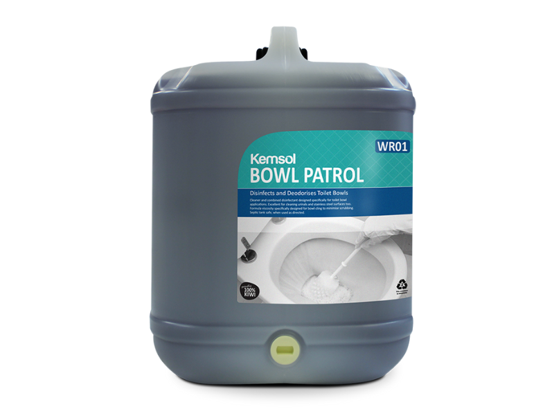 Bowl Patrol is a cleaner sanitiser designed specifically for toilet bowl applications. It kills odour generating bacteria as well as being effective in controlling fungi, slime, moulds and water stains. It is also excellent for cleaning urinals and stainless steel surfaces. When diluted at 1:4 with water Bowl Patrol is an excellent heavy-duty shower cleaner and an ideal antibacterial spray and wipe product. Great on stainless steel.