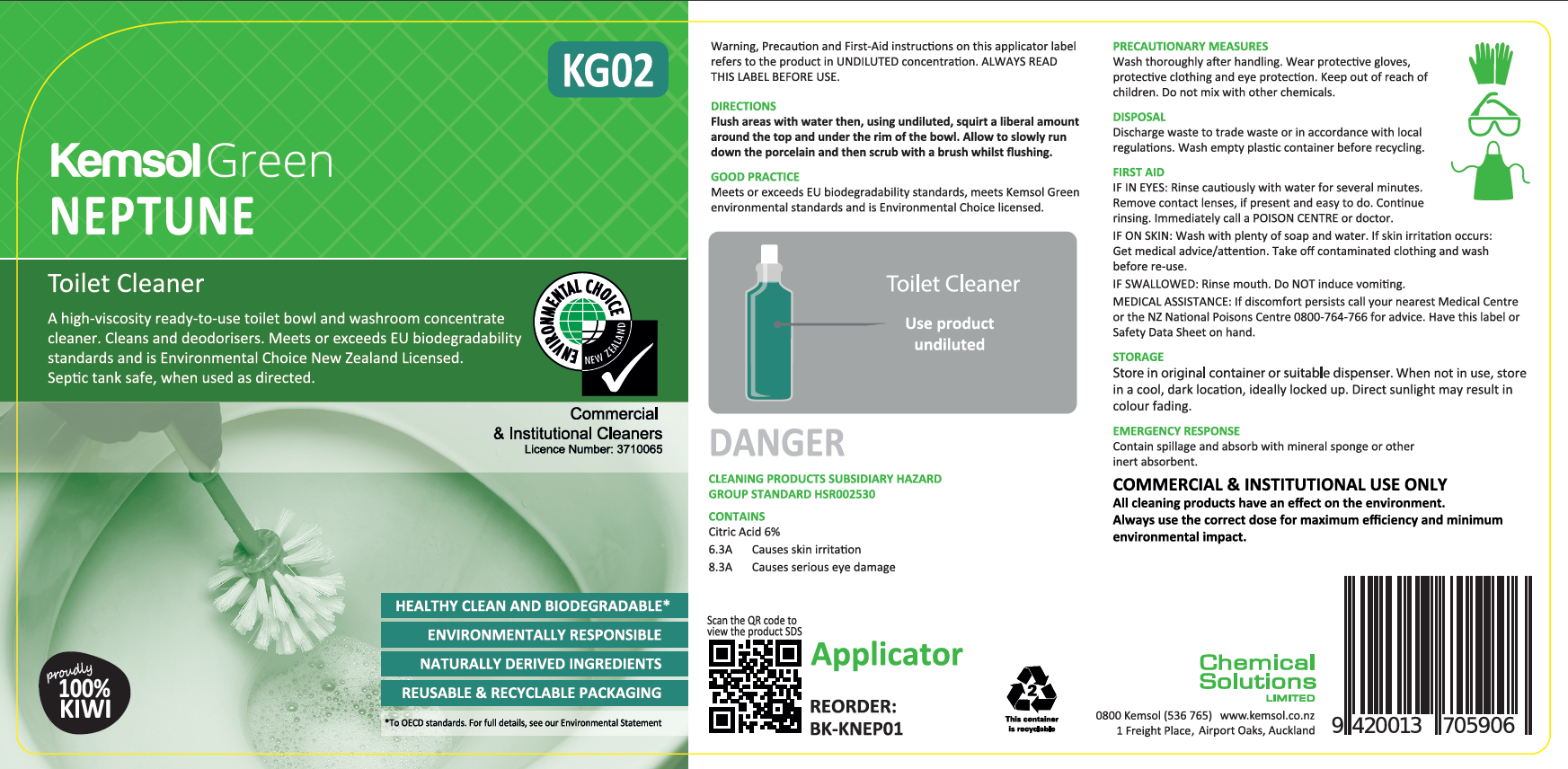 - Label to be used for Kemsol Green Neptune Toilet Cleaner