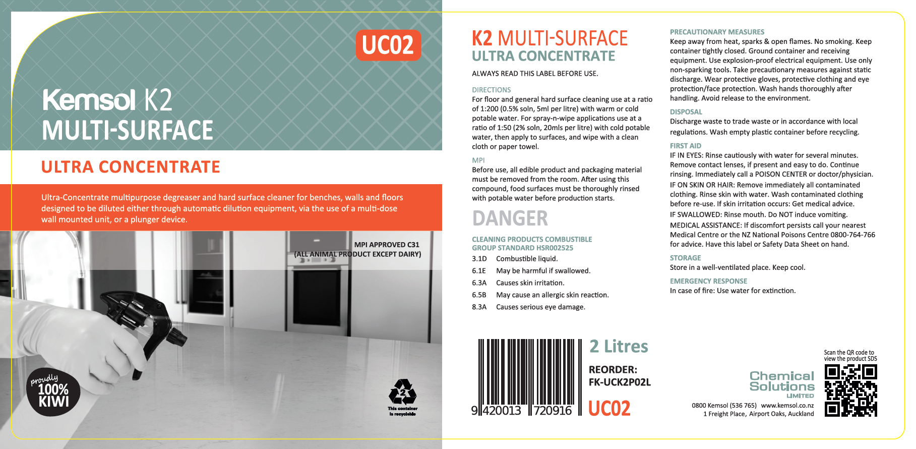 - Label to be used for Kemsol K2 Multi Purpose Spray N Wipe Surface Ultra Concentrate