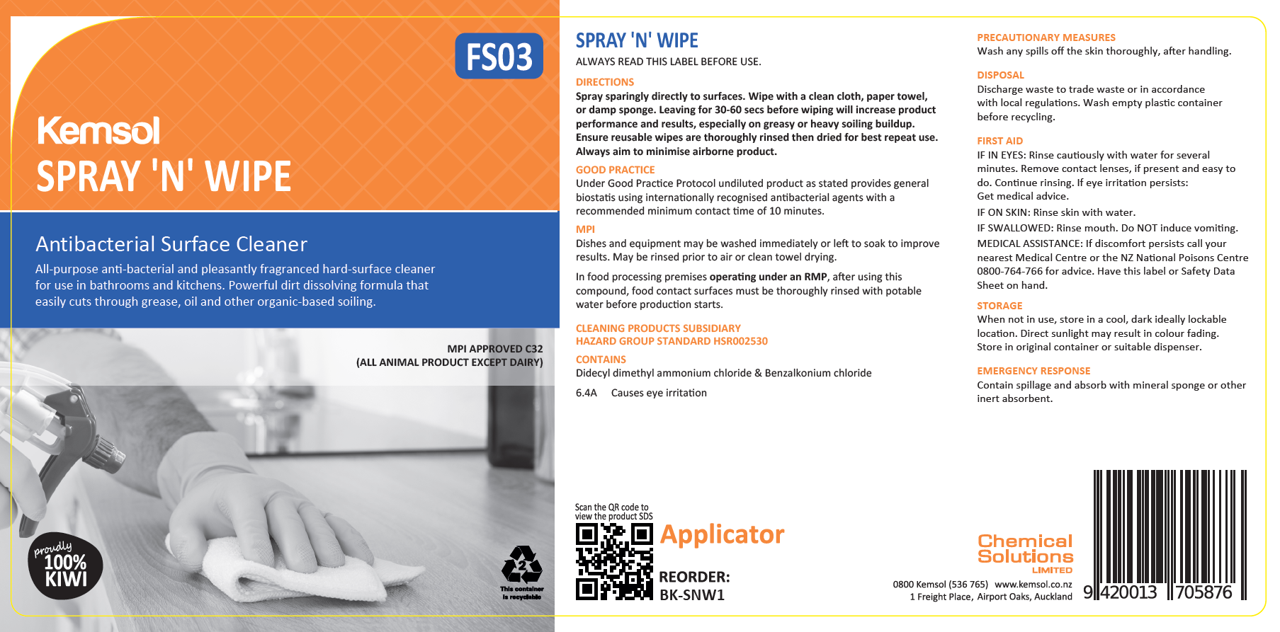 - Label to be used for Kemsol Spray N Wipe