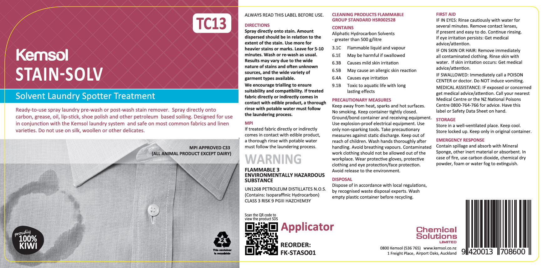 - Label to be used for Kemsol Stain Solve