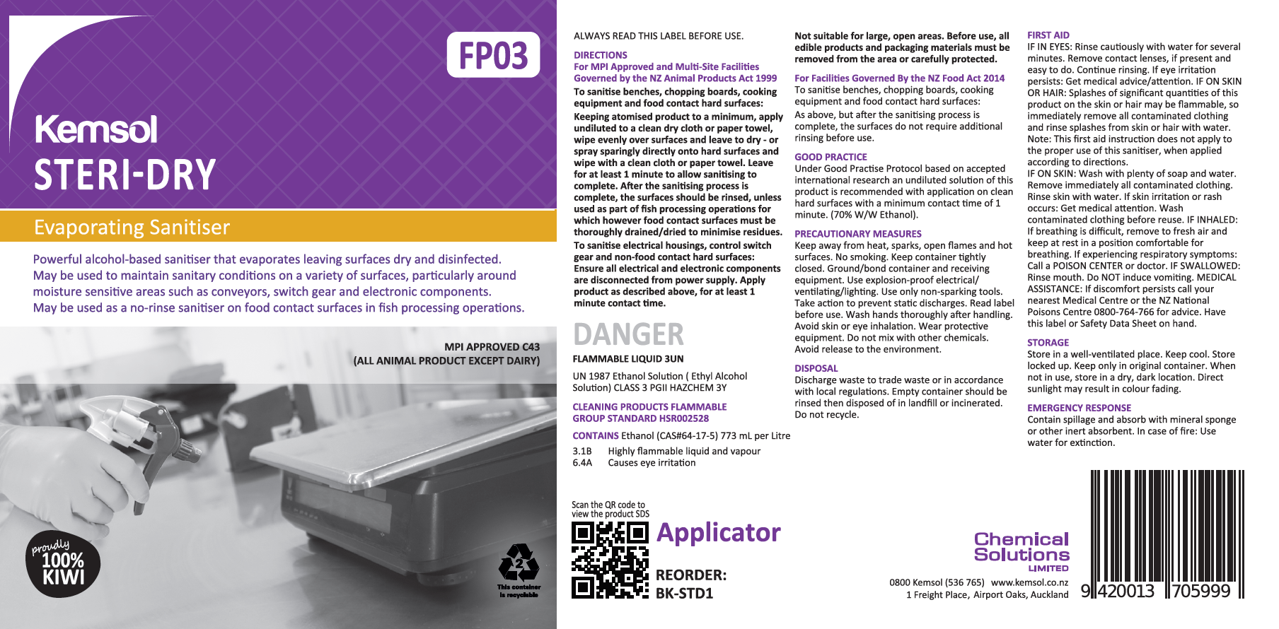 - Label to be used for Kemsol Steri Dry Evaporating Sanitiser