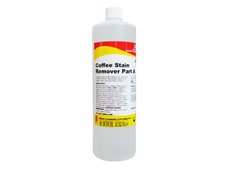 A highly potent bleach for removing coffee and other stubborn stains from carpet, fabric, and hard floor surfaces. Convenient liquid formula – no powders to dissolve; just mix parts A and B together in equal proportions. Degrades naturally and leaves no residues in the fabric.