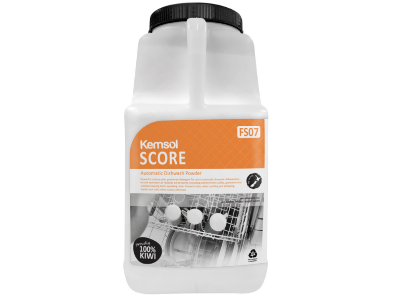 Score is a powerful surface and user safe powdered detergent for use in dishwashers. In one operation it removes all residues (including protein) from cutlery, glassware