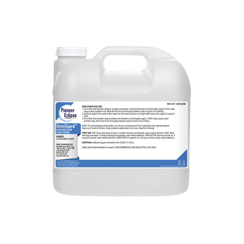 For high traffic areas that require a durable and easy to maintain surface, Omniguard is the obvious choice. Designed with the latest polymer and floor finish technology, OmniGuard™ produces a spectacular off-the-mop shine. This 25% high solids finish is ideal for high traffic and high maintenance facilities like schools and retail stores, but it also holds its shine incredibly well in low maintenance applications. Recommended for use on vinyl composition tile (“VCT”), terrazzo, marble, concrete and quarry tile.
