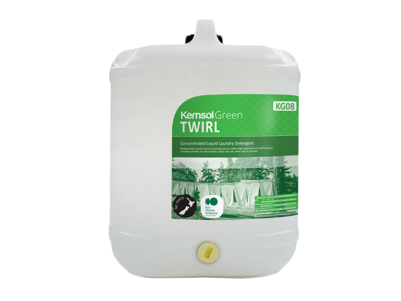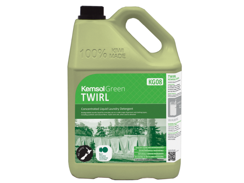Twirl is a biodegradable laundry liquid for everyday use on a wide range of garment and clothing types, including synthetic and natural fibres. Meets or exceeds EU biodegradability standards and meets Kemsol Green environmental standards.