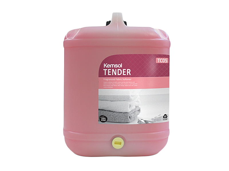 Kemsol Tender fabric softener imparts softness to both cotton and blended fabrics. It reduces static-cling and linting. Tender contains a soft fragrance that remains with fabrics after drying. Tenders thickened-pink formulation provides an economic way to finish laundry, leaving it soft and smelling vitalised.