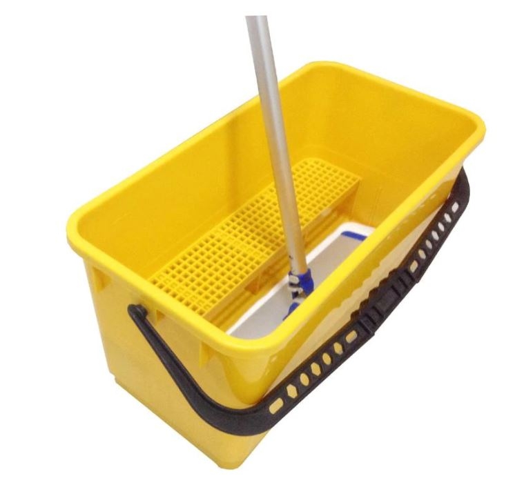 Made with heavy duty plastic, the Filta Flat Mop Bucket is suitable for a variety of cleaning jobs. The bucket has a 22 litre capacity and fits 35cm T-bars, washers or squeegees as well as 44cm frames and fringes for floor washing. It also features castors and an ergonomic handle.