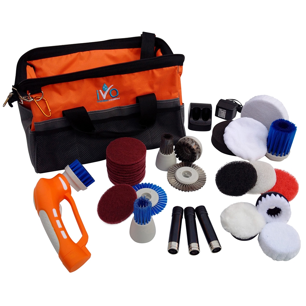 The unique iVo battery powered cordless cleaning brush has been developed to meet the desperate need to reduce time and improve cleaning standards in so many industries. With detail attachments as well as a scrubbing and buffing pads, this versatile tool is very useful for getting into awkward corners and areas that have persistent stains. With 3 batteries provided, this cordless cleaning brush is a new versatile friend for any cleaning professional.