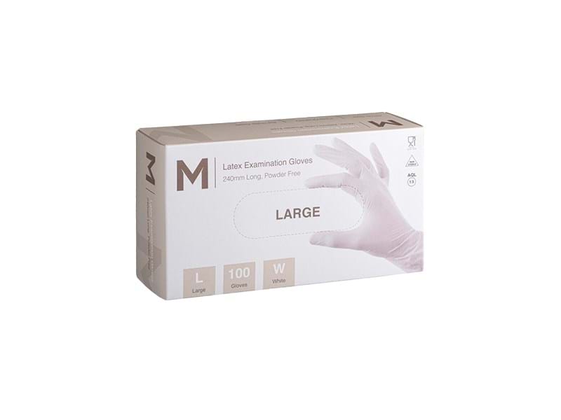 Matthews Latex Powder Free Disposable Gloves, Large, White, 100/pk