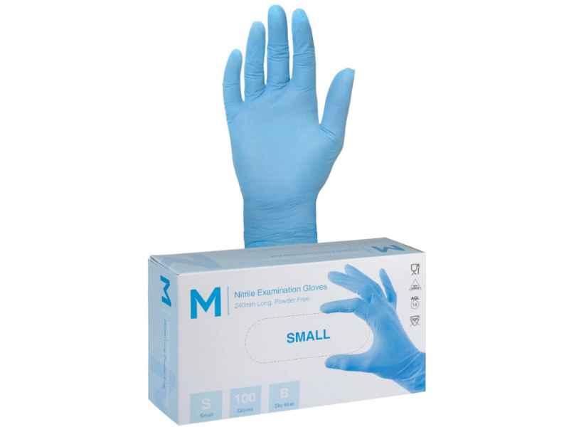 Small Nitrile Powder Free Disposable Gloves, Blue, 100/Pack