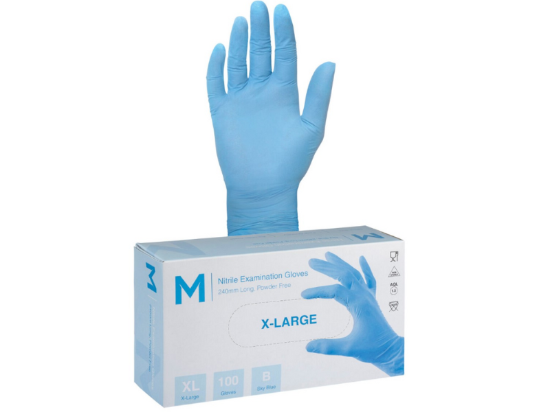 X-Large Nitrile Powder Free Disposable Gloves, Blue, 100/Pack
