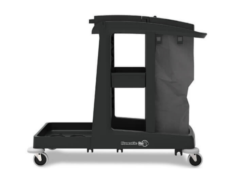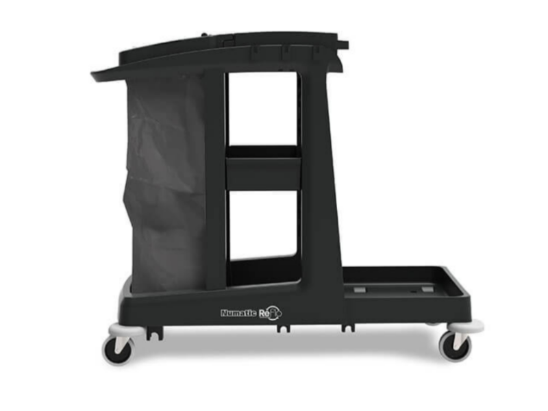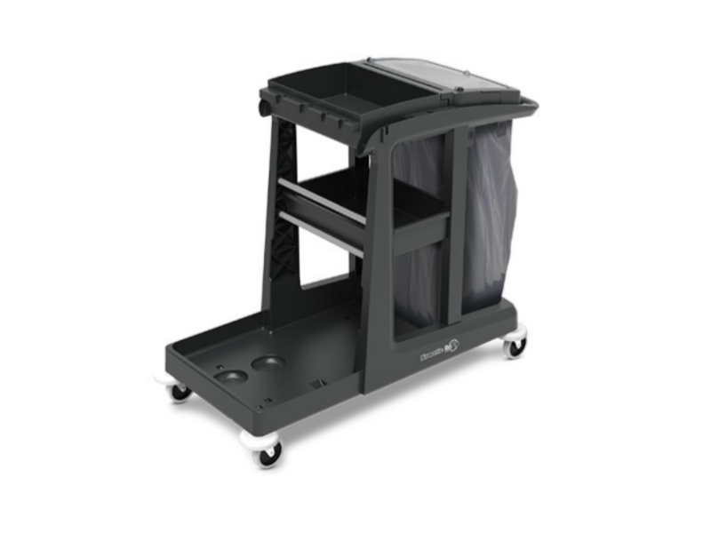 The Eco-Matic EM3 has the convenience of an open shelf storage trolley in a medium specification, a generous 120L waste bin facility, easy-access shelf storage, top storage tray and front platform unit.