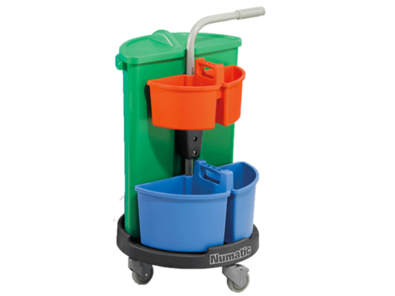 Where onboard mop systems are not required, the NC-3 is the classic helper for busy people in busy, high profile environments. A 70-litre lidded waste bin can be used with or without liner bags, one large and one small colour-coded detachable cleaning caddies that ensure that all your cleaning needs are on-board and available at all times. A real timesaver and so very convenient to use.