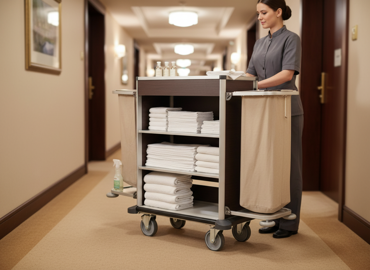 The Ascolia Tauro 800/2 Housekeeping Trolley offers exceptional functionality and organisation for professional housekeeping environments. Designed for convenience and efficiency, it provides multiple compartments, smooth mobility, and durable construction to meet daily operational demands.