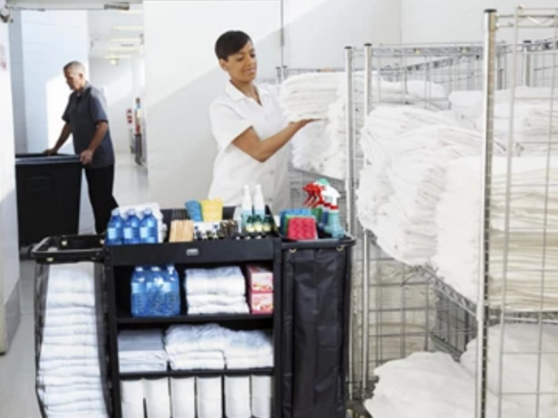 The Professional Light Housekeeping Cart by Rubbermaid has been designed with your housekeeping needs in mind, to enhance productivity with a smaller footprint and high storage capacity.