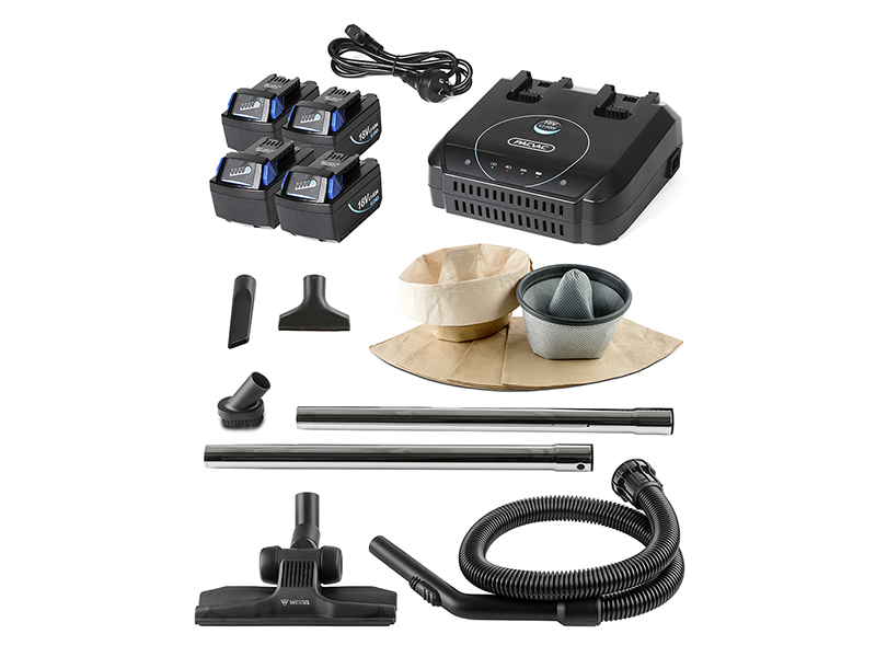 Pacvac’s battery backpack vacuum is an advanced lightweight design offering exceptional manoeuvrability, efficiency and productivity. Supplied with four lithium-ion battery packs—two for operation and two as spares—it provides extended run time for uninterrupted cleaning.