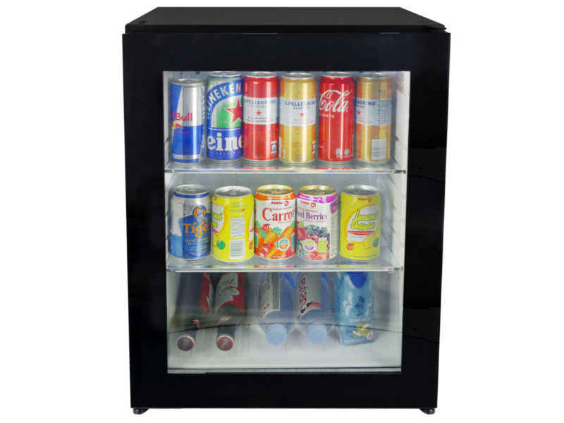- Second-Hand CPE60 LEFT-HAND HINGE 60L Glass Door Black Minibar Fridge