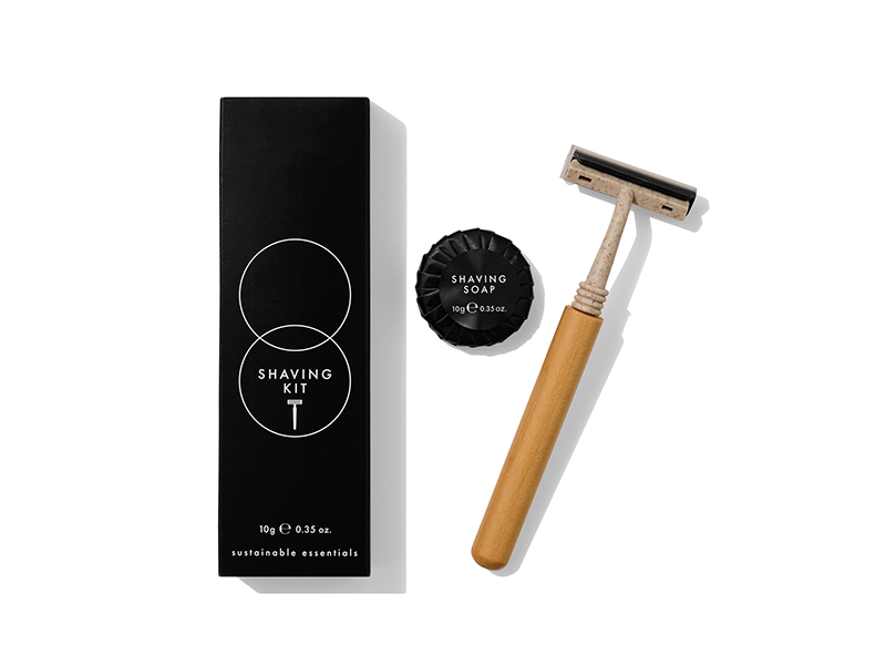 • Bioplastic (corn starch blend) used for selected items such as shower caps