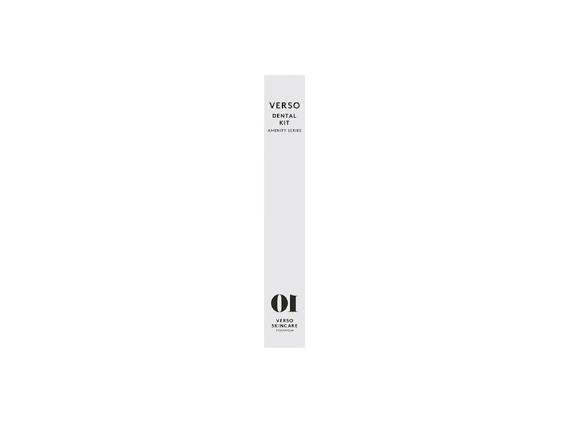 An individual dental kit inside a smart card box. Ideal for guest bathrooms and the design matches the rest of the Verso amenities range.
