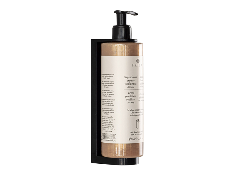 The whole collection, whether bath care products or accessories is characterised by natural, decisive nuances and exotic touches such as the typography or the cross, a distinctive graphic element. A line where the contents become the label, bright amber colours run through the entire collection combined with Havana paper accessories.
