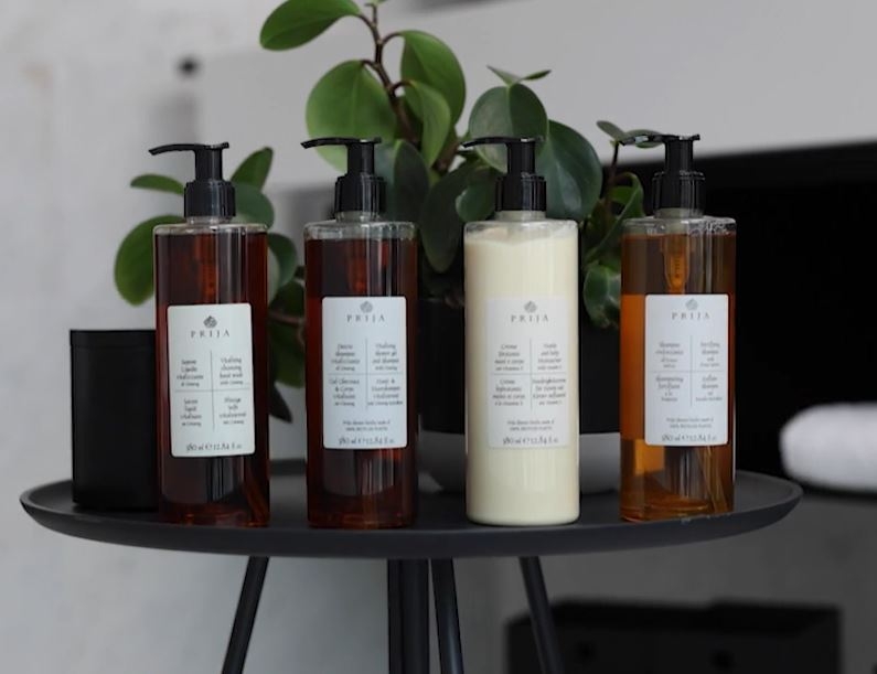 The whole collection, whether bath care products or accessories is characterised by natural, decisive nuances and exotic touches such as the typography or the cross, a distinctive graphic element. A line where the contents become the label, bright amber colours run through the entire collection combined with Havana paper accessories.