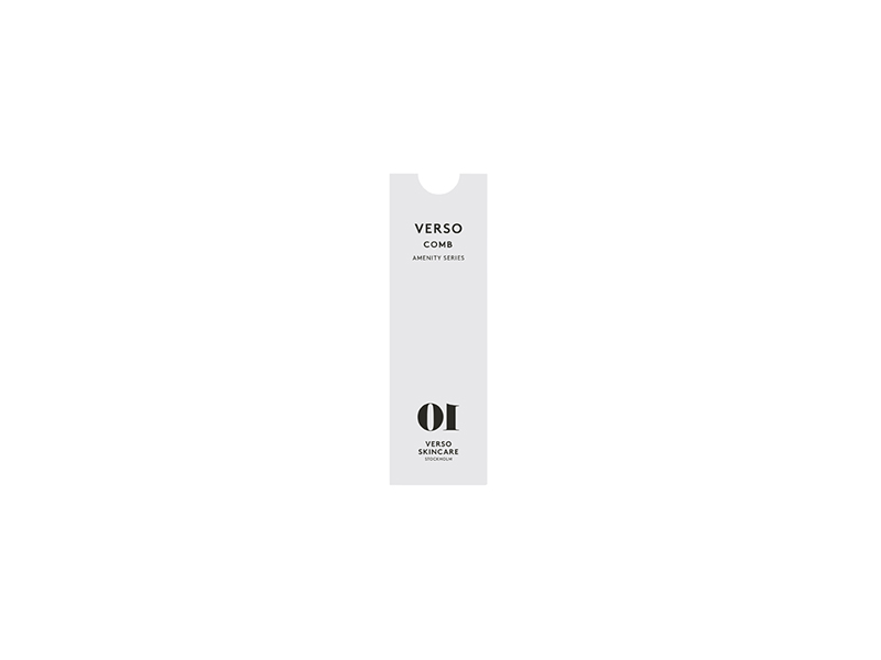 An individual comb inside a smart card sleeve. Ideal for guest bathrooms and the design matches the rest of the Verso amenities range.