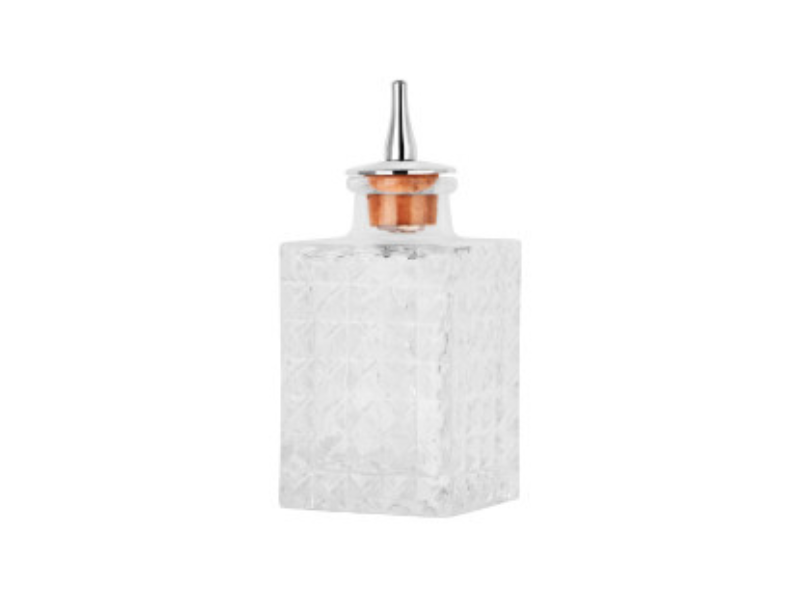 The Zanzi Square Bitter Bottle is a stylish and functional barware accessory designed to add a dash of flavour to your cocktails. The bevelled glass showcases the contents within, while the cork and chrome pourer adds a twist of colour and sophistication.
