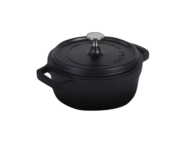 - AluChef Round Metal Casserole, 20cm, Matte Black