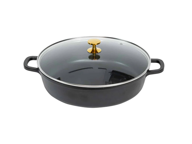 - AluChef Round Shallow Casserole Dish with Handle, 320mm, Matte Black